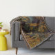 A quality printed throw has its advantages. This is a much finer weave throw than its loopier cousins, and though lighter, it is worth the investment for custom room accessorizing. The back is much prettier than the typical brown, and the fringe on the long sides very vivid, the selvage nicely done. Before photographing, I washed the throw in cold water, delicate, with a thicker woven throw the same size. On tumble dry low, this throw was dry in half the time as the other. This is a very practical quality if you use throws for furniture covers or to wrap up in frequently. The sleekness of the fabric makes it a great layer for accenting or protecting without the feeling of sitting on too much stuff. Perfect for napping or when you feel a light chill coming on. The color printing is beautiful and on this fabric, matched the design and color of my Photoshop image. This is an advantage for blending room fabrics and colors. The fringe on the short sides prints the colors from the design image and therefore varies from the side fringe. I streaked a white fractal line through the plaid pattern to give the illusion of weaving. This printed as crisp as an illusory thread, and put some white in the short side fringe, showing another advantage of print vs loomed- for artistic purposes, line lines, detail, and color integrity can be planned and preserved. My loomed throws have color limitations and more of a needlepoint texture. Print throws reproduce an exact image. The throw felt a little stiff straight out of the package, but this went away in the first delicate wash. Of course I searched the wash water for ink or bleeding and there was none.