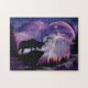 Enjoy this Unique "One of a Kind" Bull Elk Puzzle! It Features a Black Silhouette of a Bull Elk Standing on a High Mountain Overlooking a Magnificent Moonlit in a Purple Lightning Storm!!
