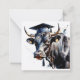 This flat note card features an illustration of a black bull wearing a graduate cap.