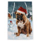 This festive design captures the joyful spirit of the holiday season, featuring an adorable pup wearing a Santa hat. The dog is nestled in a winter wonderland, complete with a snowman, a decorated Christmas tree, and beautifully wrapped presents. Snowflakes gently fall, adding a magical touch to the scene, while the vibrant colours of the holiday decorations create a warm and cheerful atmosphere.