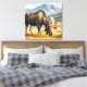 Bull Moose Grazing in Alaska Watercolor Canvas Print