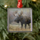 Bull moose in snowstorm with aspen trees metal tree decoration