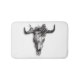 Modern Black and White Bull Skull and Rose Drawing Bath Mat. Black and white hand drawing art style. Modern and classic original art design by Imre Toth. Perfect accessories for your beautiful home decor.