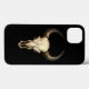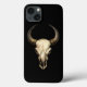 This unique design features a symmetrical bull skull on a pure black background. Rough textures and natural colors gives the graphic a realistic look. This aggressive skull design is a stunning Western pattern.