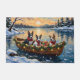 Bring unique, lovable charm to your holiday season with this distinctive Bull Terrier Christmas design! This magical scene features three sturdy, egg-headed Bull Terriers sitting attentively in a cozy wooden boat, gently floating on a serene snowy lake at sunset. The boat is beautifully adorned with glowing Christmas string lights and fragrant pine garlands, while the dogs wear festive scarves. They are surrounded by colorful wrapped presents and cheerful holly branches. Soft snowflakes gently fall, and the shimmering reflection of the lights on the water creates a truly magical winter holiday atmosphere. This design is a perfect Christmas gift for any Bull Terrier owner, dog lover, or admirer of festive and unique terrier art, capturing the serene joy of the season.