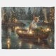 Set sail into the magic of the holiday season with this beautifully detailed illustration, showcasing a proud dog sitting in a festively decorated boat, gliding across a serene Christmas lake. The twinkling lights from nearby pine trees reflect off the water, casting a warm, festive glow that enhances the cosy ambiance. Ornaments dangle from the boat's sides, while glowing lanterns light the way, creating a scene that captures the true essence of Christmas warmth and joy. This nostalgic artwork brings a touch of holiday magic to any space, perfect for those who cherish the spirit of the season.