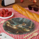 Set sail into the magic of the holiday season with this beautifully detailed illustration, showcasing a proud dog sitting in a festively decorated boat, gliding across a serene Christmas lake. The twinkling lights from nearby pine trees reflect off the water, casting a warm, festive glow that enhances the cosy ambiance. Ornaments dangle from the boat's sides, while glowing lanterns light the way, creating a scene that captures the true essence of Christmas warmth and joy. This nostalgic artwork brings a touch of holiday magic to any space, perfect for those who cherish the spirit of the season.