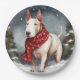 Bull Terrier Dog in Snow Christmas Paper Plate