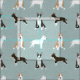 bull terrier dogs light blue fabric