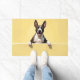 The soft lemon yellow background adds a bright and cheerful touch, perfect for welcoming entryways. Designed with extra space at the top and bottom, it allows easy personalization with names, welcome messages, or custom text—making it ideal for unique dog-themed doormats and thoughtful gifts.