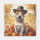 Bull Terrier In Autumn Leaves Thanksgiving Art Magnet