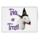Will it be Tricks or Treats this Halloween? Our holiday design has your favourite dog breed, the Bull Terrier, wearing a witch's hat. Add a little 'Hocus Pocus' to All Hallows' Eve this year!
