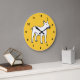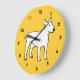 This decorative wall clock features a simple and modern cartoon illustration of a white Bull Terrier dog on a vibrant orange background. The minimalist design adds a touch of whimsy to any room while still remaining stylish and elegant. Perfect for Bull Terrier enthusiasts or anyone looking for a unique and eye-catching wall clock.