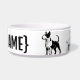 This dog bowl is a personalized and stylish accessory for your bull terrier. The bowl has several minimalist icons of bull terriers printed on it. You can also add your dog’s name below the icons, making it a unique and special item. The bowl is designed for both food and water, and it is easy to clean and durable. This dog bowl is a perfect gift for any dog lover or bull terrier fan.