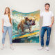 Bulldog Beach Surfing Painting Fleece Blanket