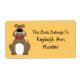 This bookplate label features a bulldog holding a bone in it's mouth on an orange background with customisable text. Click on the Customise It button to change the background colour.