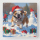 Bulldog Christmas Festive Snow Scene Square Wall Clock