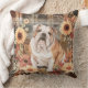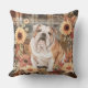 Bulldog Dog Fall Watercolor Flowers Cushion