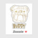 Show off your love for bulldogs with this custom pet sticker featuring a hand-drawn bulldog face and bold text with the name “Buddy.” Perfect for decorating laptops, water bottles, phone cases, or notebooks. Great gift for bulldog owners, pet lovers, or anyone who wants a fun and unique dog sticker. Durable and easy to apply. Customise with your own pet’s name to create a personalised keepsake.
