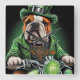 Bulldog Driving Bike St. Patrick's Day Square Wall Clock