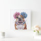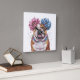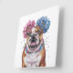 Bulldog Flower Crown Watercolor Print Square Wall Clock