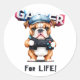 Add some fun to your collection with this Bulldog Gamer For Life classic round sticker! Featuring a playful bulldog holding a joystick, this design is perfect for gaming enthusiasts and dog lovers alike. Stick it on your laptop, console, or gear to show off your gamer spirit!