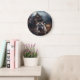 Wall Clock, 25.4 cm Round Black Wooden Frame