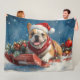 Bulldog in Sledge Let it Snow Christmas Fleece Blanket