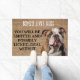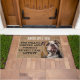 Custom dog Bulldog doormat with a funny quote. "You will be sniffed and possibly licked...Deal with it." It has a non-slip rubber that won't crack or buckle, resists fading, mould, and mildew and can be easily cleaned with a hose. Be creative - click on CUSTOMIZE to add/remove/change text, change the picture, resize the picture, change colours, background or anything else the customisation tool will allow!