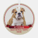 Bulldog Puppy 1st Christmas Red Ribbon Dog Photo Glass Tree Decoration