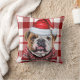 Bulldog Red and White Plaid Christmas Holiday Cushion