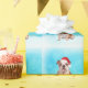 Bulldog Sitting in snow with Christmas Santa Hat Wrapping Paper