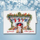 The front of this Christmas greeting card has an image of an adorable brown and white bulldog wearing a red and white Santa hat. The dog sits in front of a decorated fireplace, expectantly waiting for Santa Claus. The red text at the bottom says "Waiting for Santa". The text is customisable, as is all the inside text, so you may make it say whatever you'd like. Cute! See more Bulldog images, along with dozens of other dog breed products, at Dog Village.