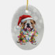 Bulldog Wrapped in Christmas Lights Ceramic Tree Decoration