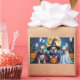 A playful Halloween scene featuring a mischievous little pup peeking out of a carved pumpkin, surrounded by spooky-fun fall vibes. With cheeky charm and autumn colours, it’s the perfect touch of humour for the season.