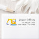 Return address label with a watercolor illustration of a yellow bulldozer. You can use this for a birthday or baby shower theme cards.