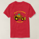A cool bulldozer makes up this fun t-shirt. Customisable so you can add your own text and change the background colour. Makes a great gift!