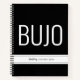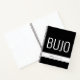 Personalised bullet journal notebook in black and white with an oversized large custom title and starting date printed on the cover in a big modern sans serif font. Pick interior pages that are blank, grid, or lined to inspire your bullet journal creations.