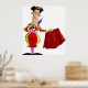 A bullfighter in the ring with the bull. The matador is holding a red cape. This design looks really effective on these Poster