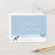 A Merry Christmas postcard with a bullfinch in the foreground and fir trees in a snowy landscape ; texts are customisable. Holly illustrates the back of the card. Perfect to send to your friends, family or even to your customers for Xmas or New Year!