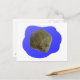A photo of a young African Bullfrog sitting in a digitally created blue lake on a white postcard.