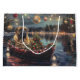 Set sail into the magic of the holiday season with this beautifully detailed illustration, showcasing a proud dog sitting in a festively decorated boat, gliding across a serene Christmas lake. The twinkling lights from nearby pine trees reflect off the water, casting a warm, festive glow that enhances the cosy ambiance. Ornaments dangle from the boat's sides, while glowing lanterns light the way, creating a scene that captures the true essence of Christmas warmth and joy. This nostalgic artwork brings a touch of holiday magic to any space, perfect for those who cherish the spirit of the season.
