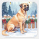 Bullmastiff Winter Forest Holly Christmas Art Square Sticker