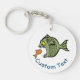 Angry fish bullying a little one cartoon illustration. Custom background colour. Custom text on both sides.