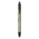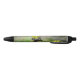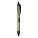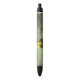 A large bumble hanging from a small yellow flower while a small insect flies close by.