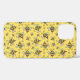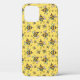 Cute repeat pattern of lots of bumble bees on a yellow background.