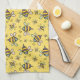 Cute repeat pattern of lots of bumble bees on a yellow background.