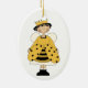 Adorable oval ornament with lovely country primitive artwork of a Bumble Bee Princess, in a cute yellow and black dress and golden crown. Great Christmas tree ornament everyone will enjoy. Start a collection of all our special little winged girl ornaments.