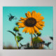 Bumble Bee Tennis Player With Racquet on Sunflower Poster