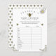 Cute yellow and white floral bee-themed baby shower game for guess who knows mummy best. Perfect for bumble bee showers and yellow baby showers in spring or summer. Unique hand-drawn flowers with buzzy yellow and black bees. Mum to bee's name is front and centre with "what will it bee?" below the baby shower text. Guests try to guess which feature mummy hopes the baby will get. Easily edit the text on this bumble bee baby shower game.